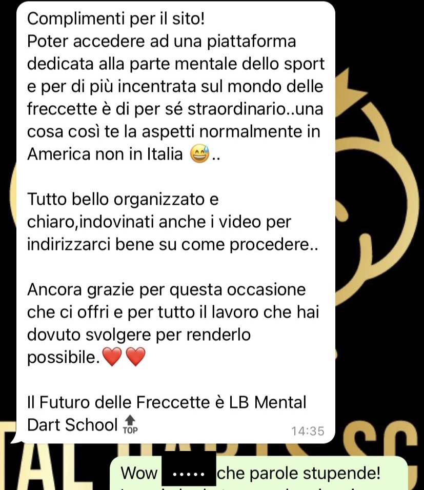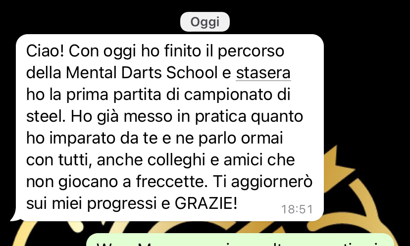 “Negli ultimi anni ho lavorato con più di 900 atleti, ma nelle freccette la testa conta di più rispetto ad altri sport. Ho provato in prima persona il braccio che trema prima di una doppia decisiva, o la difficoltà a rilasciare la freccia. Per questo ho creato la MENTAL DARTS SCHOOL.”